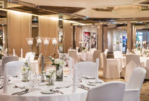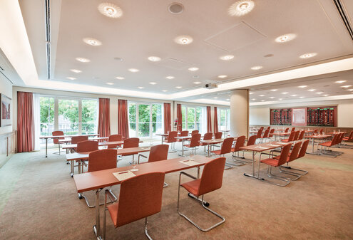 Der Altes Land Room ist ein vielseitiger Veranstaltungsraum im Erdgeschoss des Grand Elysée Hamburg. Große Fenster öffnen den Blick auf den Moorweidenpark und lassen viel Tageslicht in die flexibel teilbare Fläche. Mit 47 bis 217 m² eignet sich der Raum für Seminare, Meetings oder Feierlichkeiten im kleinen wie im großen Rahmen.