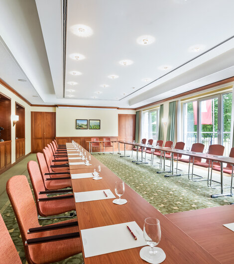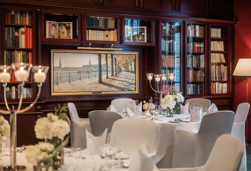 Im Amerikahaus trifft Neuengland auf Hamburg: Bodentiefe Fenster und ein Balkon mit Blick auf den Moorweidenpark verleihen dem Veranstaltungsraum eine luftige, offene Atmosphäre. Die 80 m² eignen sich für Workshops, Besprechungen oder Empfänge, bei denen Licht und Weite eine besondere Rolle spielen.