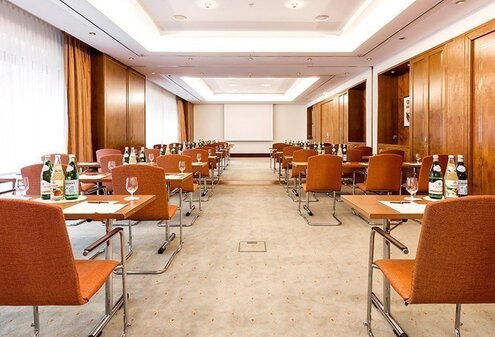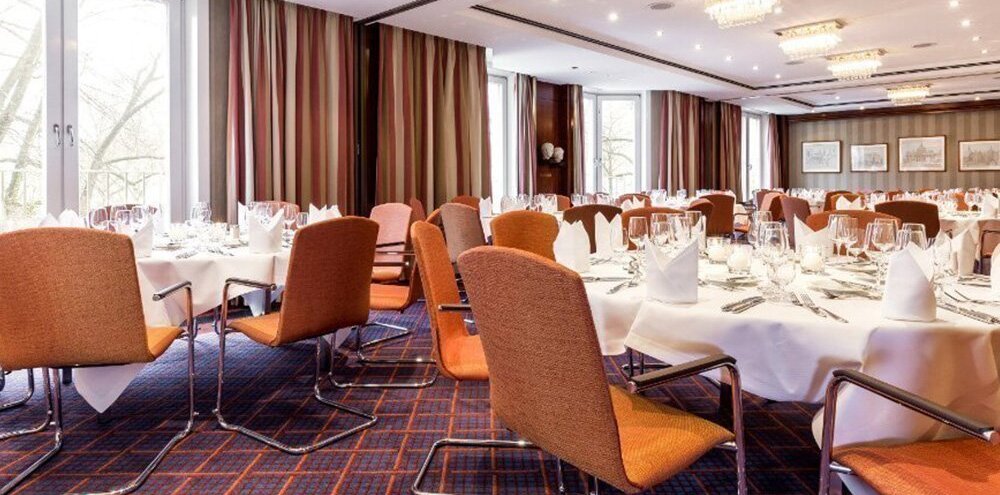 Der Veranstaltungsraum Europa liegt in der ersten Etage des Grand Elysée Hamburg und bietet mit 100 m² viel Raum für Workshops, Meetings oder Empfänge. Die große Fensterfront sorgt für angenehmes Tageslicht, während die beiden Raumsektionen flexible Nutzungsmöglichkeiten eröffnen.