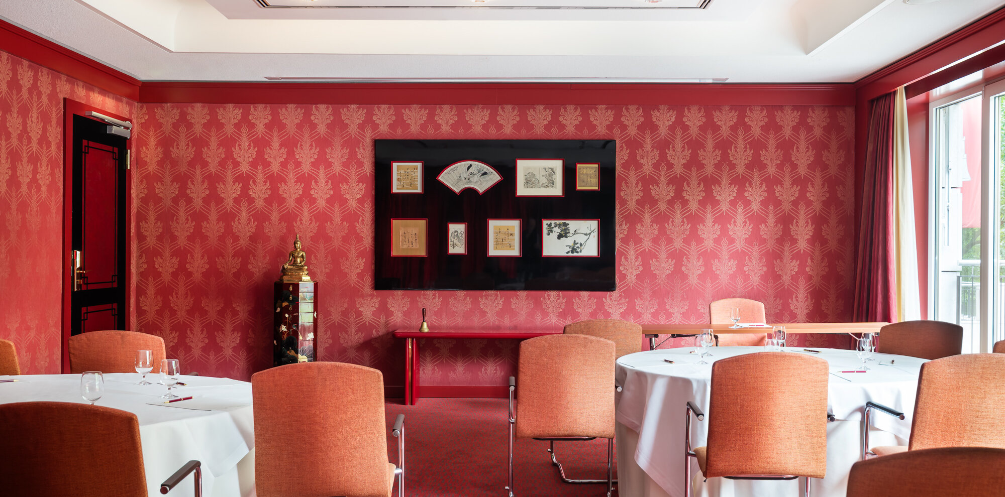 Der Raum Shanghai verbindet fernöstliches Ambiente mit dem Blick auf den Moorweidenpark. Die große Fensterfront lässt viel Tageslicht in den 60 m² großen Raum und schafft eine ruhige Atmosphäre für Meetings, Workshops oder kleine Empfänge. Unterschiedliche Bestuhlungsformen machen ihn vielseitig einsetzbar.