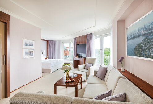• Geräumiges Zimmer mit separatem Schlafbereich